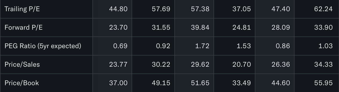 Nvidia’s margins are simply absurd. The gross sitting in the low 70s, majority of that owed to their AI data center and CUDA. Obviously, like AMZN, as demand for AI workload grows, the need for Nvidia’s product (chips) will only increase. Beyond the unheard of financials, NVDA’s P/E and PEG is the lowest it’s been in over a year. In addition to this, their price-to-sales and price-to-book is the second lowest it’s been in the same timeframe.