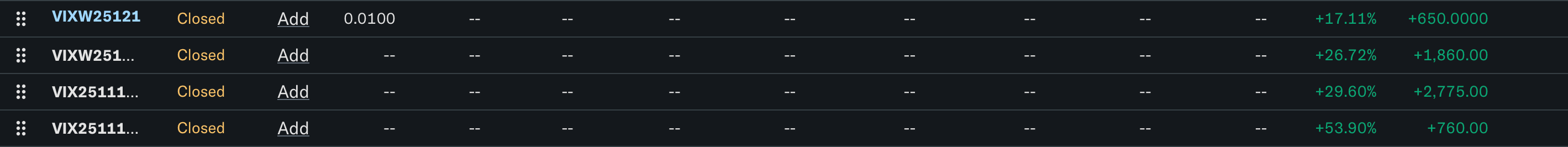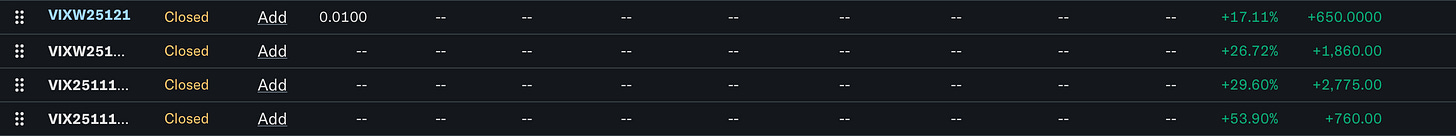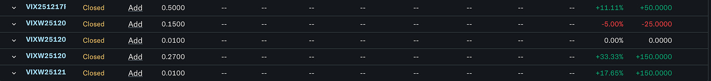 In my last article, we went over the basics for the Volatility index and how it is essentially an emotional barometer for investors to view the market sentiment. As you may have seen, I’ve returned pretty well on my personal option trades. There’s two different strategies that I go about trading on, and a third I personally haven’t tried, but can be used as a crash insurance. As for the two that I personally do, I will also show optional safety measures I take to cap my losses at the expense of unnecessarily major gains. To show I am worthy to speak on the subject, allow me to share every VIX option trade I’ve made: